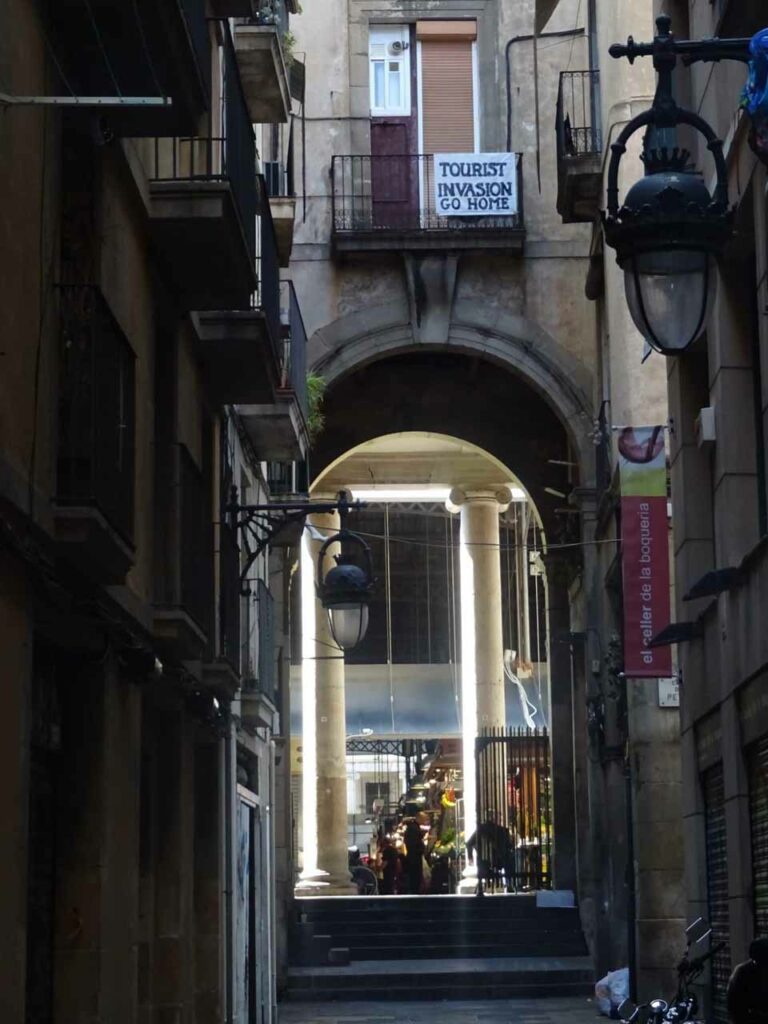 Residents have adapted to the tourist onslaught in various ways. Sometimes by posting stickers (above), though most just do their best avoid the crowds. One way is to avoid the major tourist attractions. How frequently do you think Barcelona residents want to visit La Sagrada Familia  or Casa Batlló? I have a local friend who only went to La Sagrada Familia for the first time recently…for a work function.